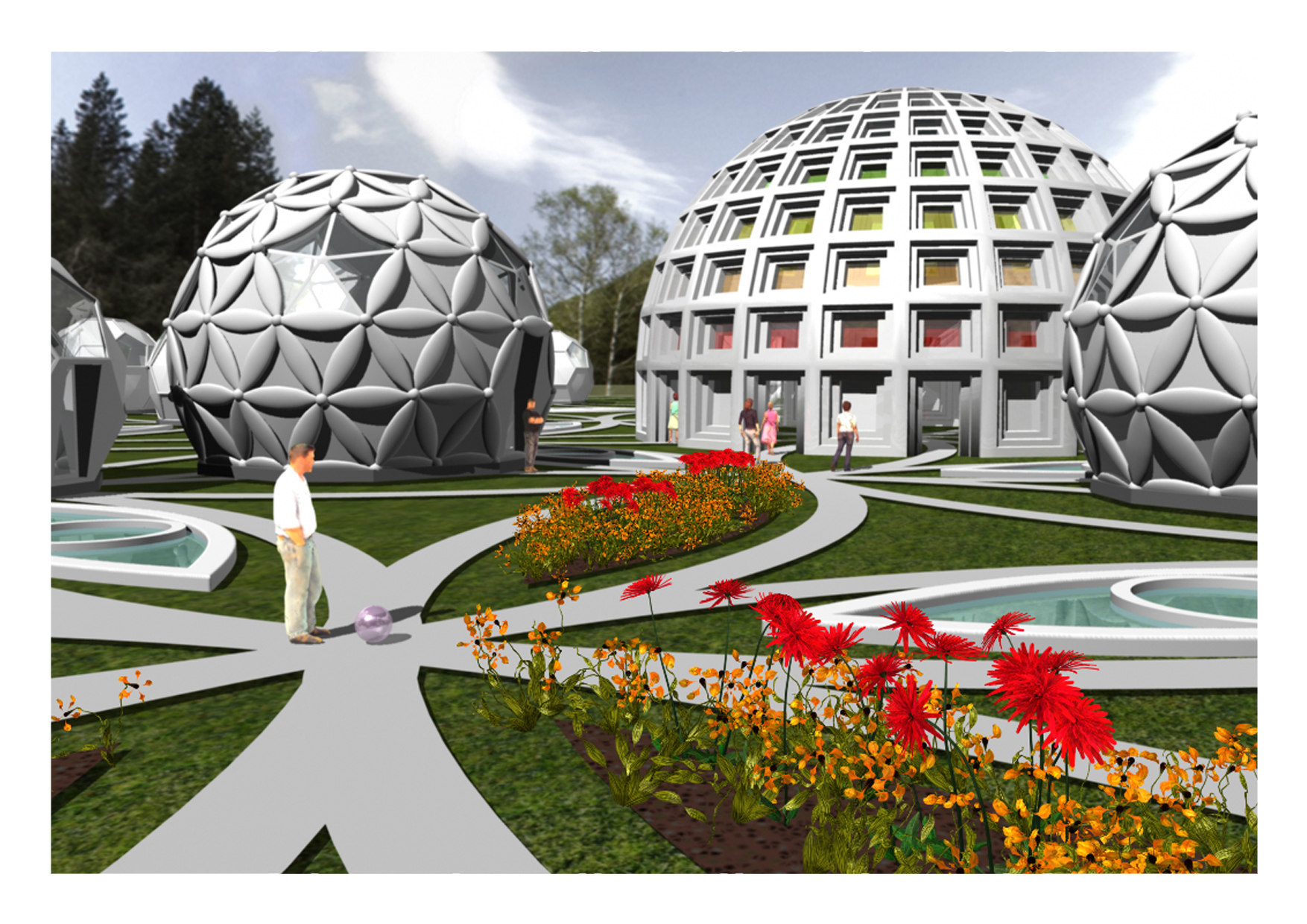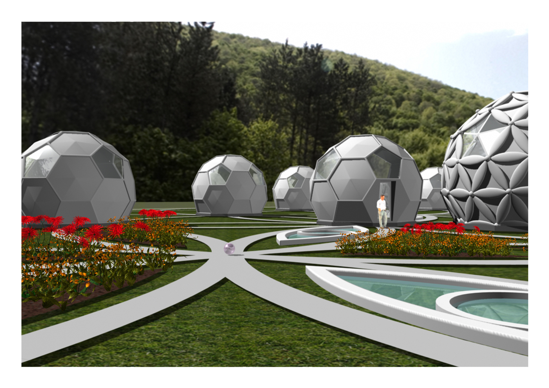 Here is my vision of a Holistic Retreat Center – “Homo Solaris” build from ecological materials, fully self-sustained, energy, water and food independent, with the general purpose of educating people about harmonizing with nature, unifying all religions, coping with the new paradigm shift and for the general physical and spiritual evolution of all mankind.